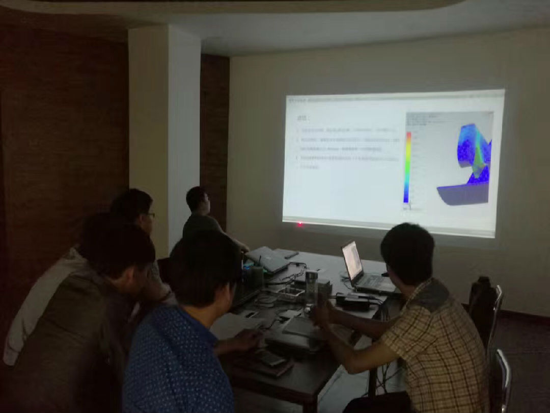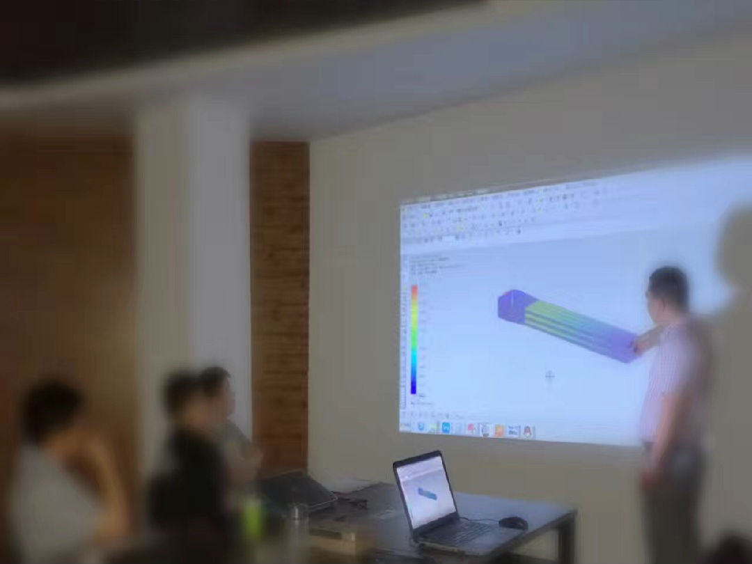 一件零部件運行時是否會損壞,在結(jié)構(gòu)設(shè)計時候就要考慮到其強度,如何確定其使用壽命?我們不能只憑經(jīng)驗,要靠數(shù)據(jù)來說話。所以此次內(nèi)訓(xùn)的重點就是培訓(xùn)員工如何使用UG軟件來對零部件的受力分析。在內(nèi)訓(xùn)上,基準設(shè)計機構(gòu)大區(qū)副總經(jīng)理、基準工業(yè)設(shè)計總經(jīng)理劉開運用PPT的形式,圖文并茂,把如何操作的每一個步驟,清晰明確地展示出來,把設(shè)置受力大小、方向,力的作用點都非常仔細地進行講解,并讓伙伴們操作掌握,真正讓每一位參與的伙伴學(xué)習并能熟練掌握。