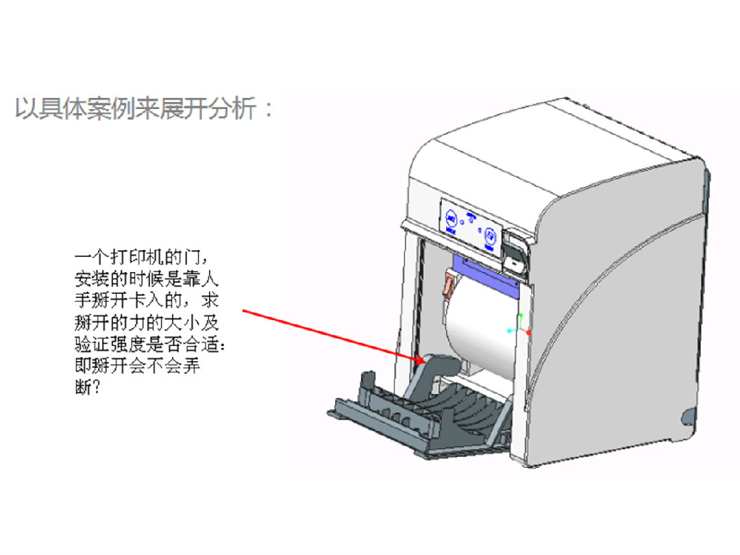 所謂的一根筷子容易斷,十雙筷子扭不斷,究竟是什么內(nèi)部機制?帶著這個問題,我們小伙伴們把目光投向打印機的門這個具體的案例上面,讓其作為切入點,展開研究一件設(shè)備的零部件結(jié)構(gòu)強度是怎么測量與構(gòu)造的。